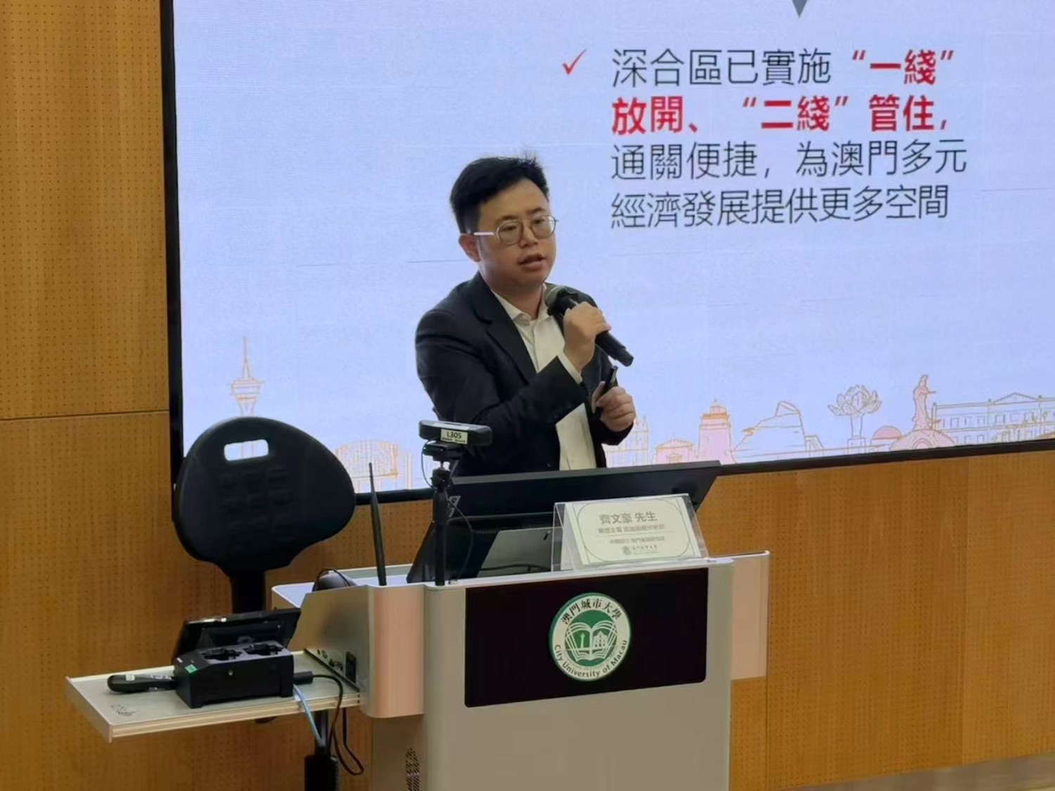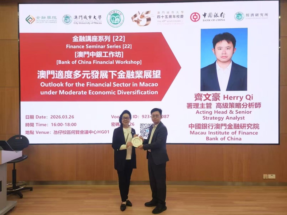 On 26th March 2026, the Faculty of Finance at City University of Macau held a finance seminar, at Ho Yin Conference Center on Taipa Campus. The seminar featured Mr. Herry Qi, Acting Head & Senior Strategy Analyst, Macau Institute of Finance, Bank of China, was invited as the keynote speaker. The seminar focused on the theme: "Outlook for the Financial Sector in Macao under Moderate Economic Diversification". Distinguished guest included Associate Dean Eva Khong of the Faculty of Finance.