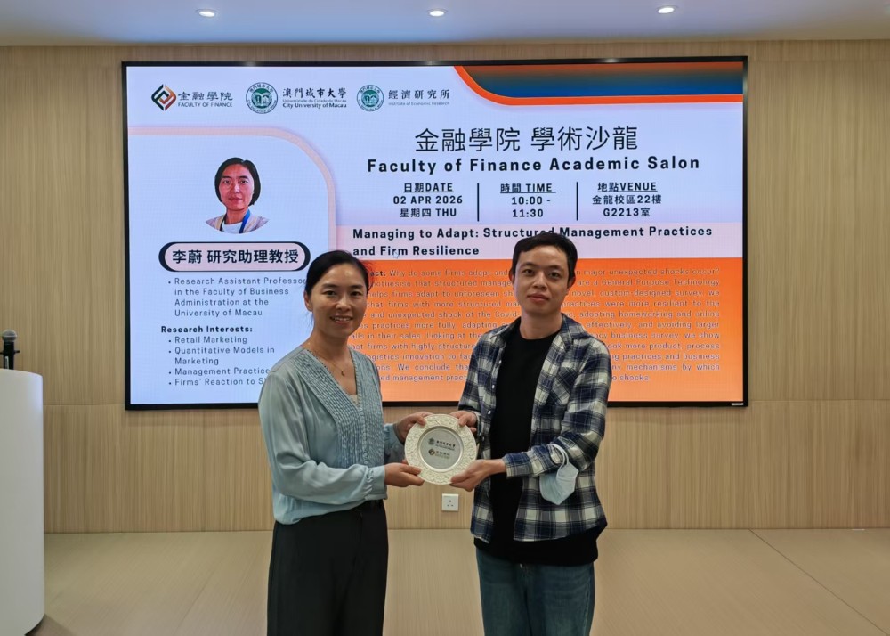 On 2 April 2026, the Faculty of Finance at the City University of Macau organized the twelfth Academic Salon at the Golden Dragon Campus. This academic salon invited Dr. Wei LI, a research assistant professor in the Faculty of Business Administration at the University of Macau, as the speaker. She presented her paper titled “Managing to Adapt: Structured Management Practices and Firm Resilience”.
