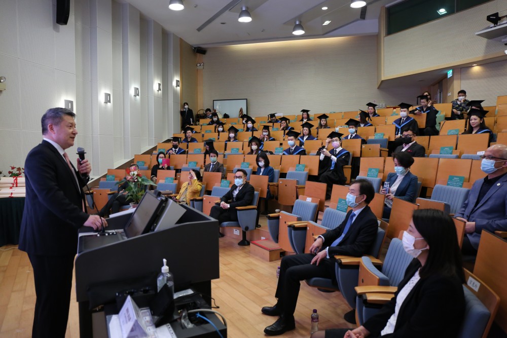 In the ceremony, Rector Jun Liu warmly congratulated all the graduates. He mentioned that the importance of financial planning and risk management has improved during the pandemic, especially as Macao is a city of longevity, citizens will need more financial planning consultants for professional advice.