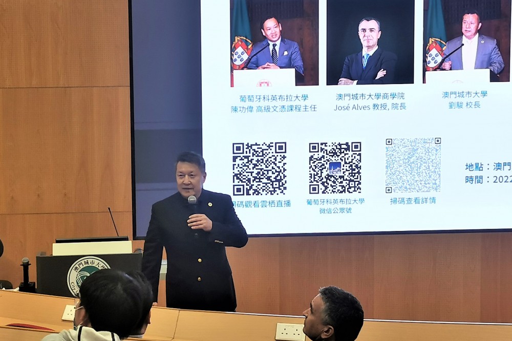 City University of Macao and University of Coimbra’s Advanced study program in Europe – Diploma of Advanced Studies in Economic International Relations – Information session for Year 2022 student intakes was held both onsite and online at the Ho Yin Convention Centre. Since City University of Macau signed cooperation agreement with University of Coimbra last September, the two universities have been actively promoting the implementation of relevant projects. The study program provides students an opportunity to study in a distinguished Portuguese university, experience its international learning environment, and receive teaching and guidance from renowned experts and scholars in the discipline.