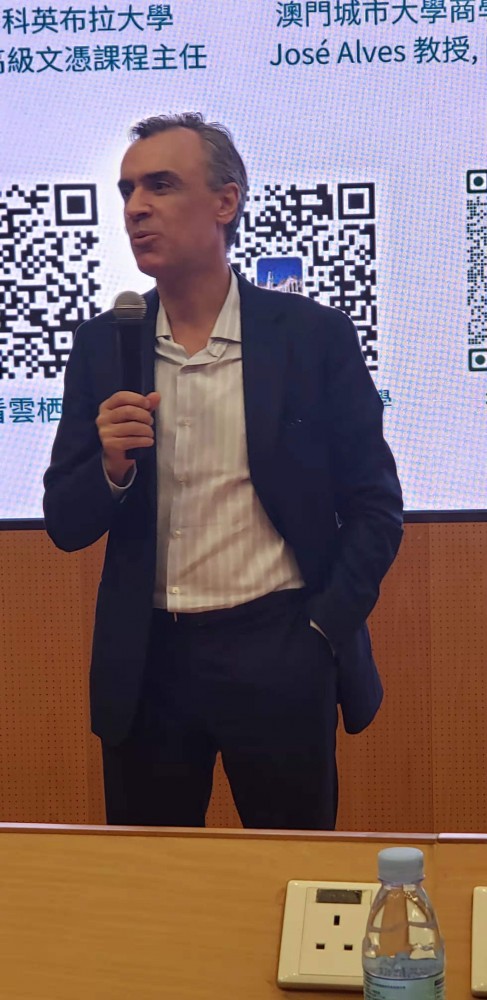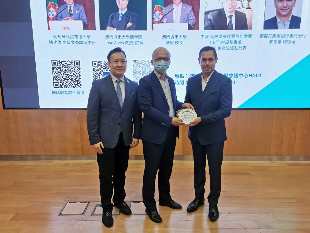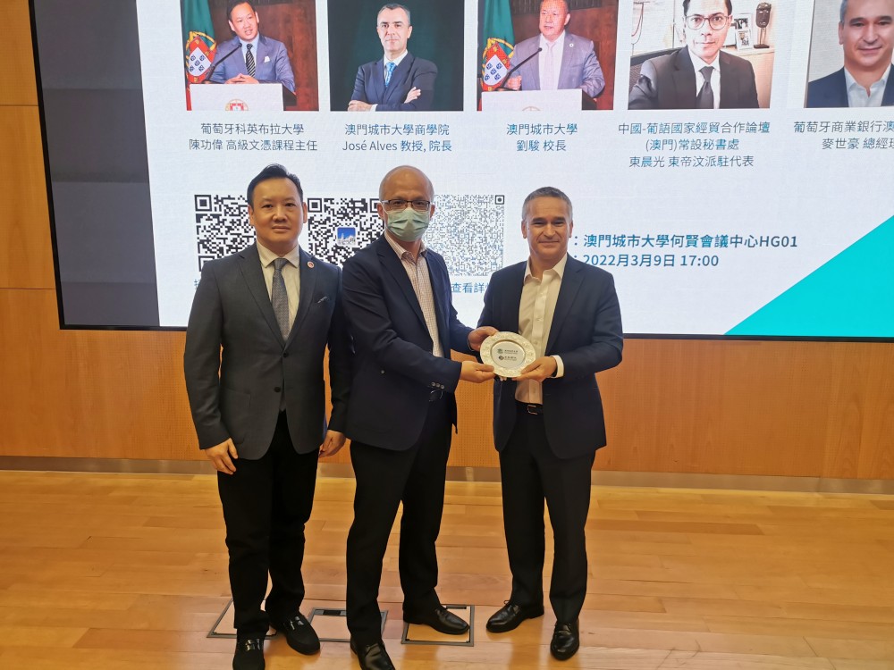 Mr Derio Chan, Program Coordinator of the Advanced Studies Diploma of the University of Coimbra in Macau, introduced the joint program while Rector Jun Liu, City University of Macau; Dean Jose Alves, Faculty of Business, City University of Macau; Mr Danilo Afondo-Henriques, Delegate of Timor-Leste at Forum of Macau; and Mr Constantino Mousinho, General Manager of Banco Comercial Portuguese, S.A. Macau Branch, delivered a speech in the information session, respectively. Guests attending the information session also included Dean Wai Kong Cheung of Faculty of Finance, Executive Associate Dean Xi Li of Faculty of International Tourism and Management, and Associate Dean Eva Khong of Faculty of Finance, City University of Macau.