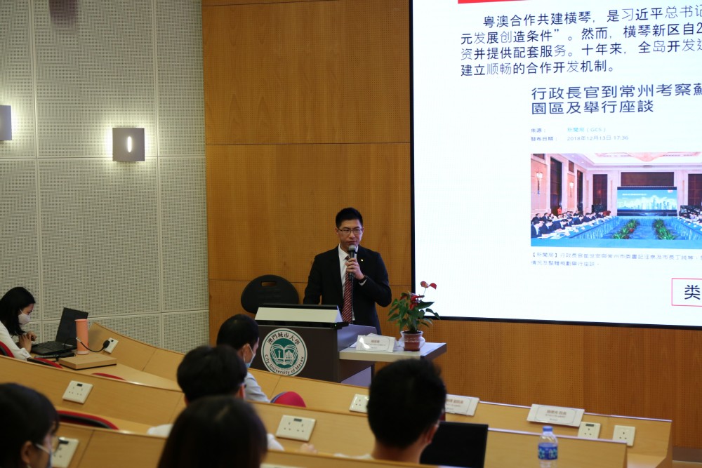 To begin with, Mr Ieong introduced the development history of Guangdong-Macao In-Depth Cooperation Zone in Hengqin. In 2009, the State Council of the People’s Republic of China officially approved the Overall Development Plan of Gengqin, whereby Hengqin Island was designated as Zhuhai Special Economic Zone, and the Hengqin New Area was formally established. In 2010, the State Council officially approved the new strategic implementation of an innovative policy in Hengqin that made it even more special than the policies in force in the other special economic zones of China.
