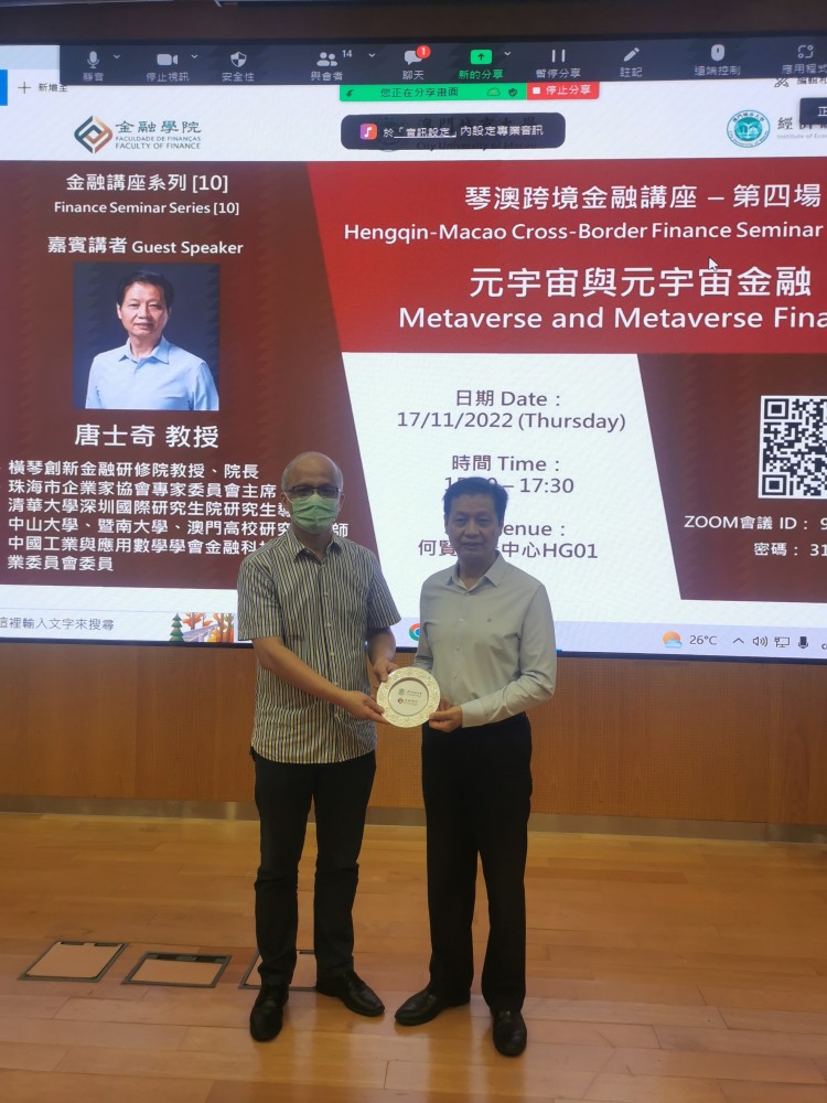On 17 November 2022, the Faculty of Finance of the City University of Macao held the Finance Seminar Series [10] Hengqin-Macao Cross-Border Finance Seminar – Forth Talk at the Ho Yin Convention Centre. Professor Shiqi Tang, Dean of Hengqin Innovative Financial Research Institute, Chairman of Expert Committee of Zhuhai Entrepreneurs Association, Postgraduate supervisor of Tsinghua Shenzhen International Graduate School, Sun Yat-Sen University, Jinan University and other Macao Universities, and member of Fintech and Algorithm Professional Committee of China Society of Industrial and Applied Mathematics, was invited to deliver a speech titled “Metaverse and Metaverse Finance”. Guests attending this seminar include Dean Adrian Cheung and Associate Dean Eva Khong, City University of Macao.