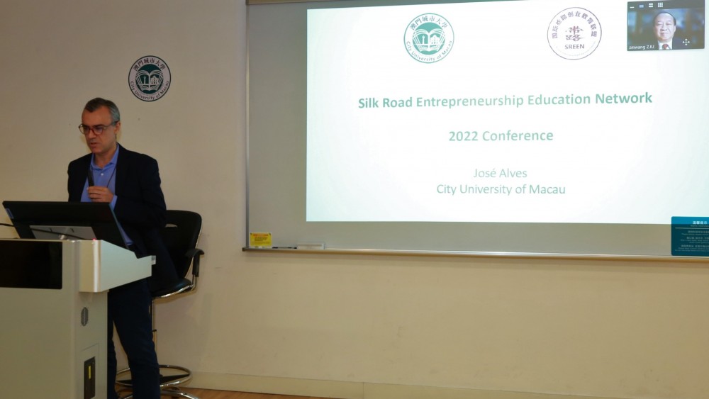 The Silk Road Entrepreneurship Education Network (SREEN), Zhejiang University’s Global Entrepreneurship Research Center, the Faculty of Business, the Faculty of Finance, and the Institute for Research on Portuguese-Speaking Countries of the City University of Macau (CityU) co-organized the 5th Annual Conference of Silk Road Entrepreneurship Education Network today at the Taipa campus. This year’s edition, themed “Sustainable Entrepreneurship and leadership Development”, invited scholars from the United Kingdom, Japan, and China to share their insights via virtual conference. CityU Rector Jun Liu and Professor Zhongming Wang, Chairman of the Board of SREEN and Professor of the School of Management at Zhejiang University, delivered their opening addresses.