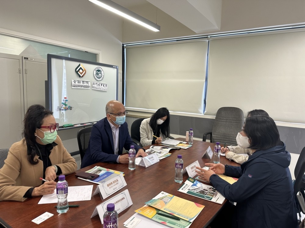 On the morning of 16 February 2023, the Faculty of Finance of City University of Macau (CityU Macau) and the School of Business of Shanghai Normal University Tianhua College held an exchange and cooperation meeting on the Taipa Campus. The meeting was attended by representatives of the School of Business including Dean Baoqing Cheng, Ms. Xi Li and Ms. Yuxi Zhang of the Department of Financial Management, as well as Dean Adrian Cheung and Associate Dean Eva Khong of the Faculty of Finance of CityU Macau.