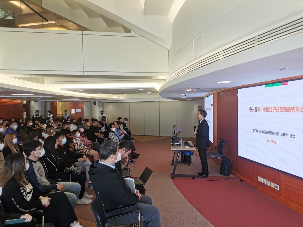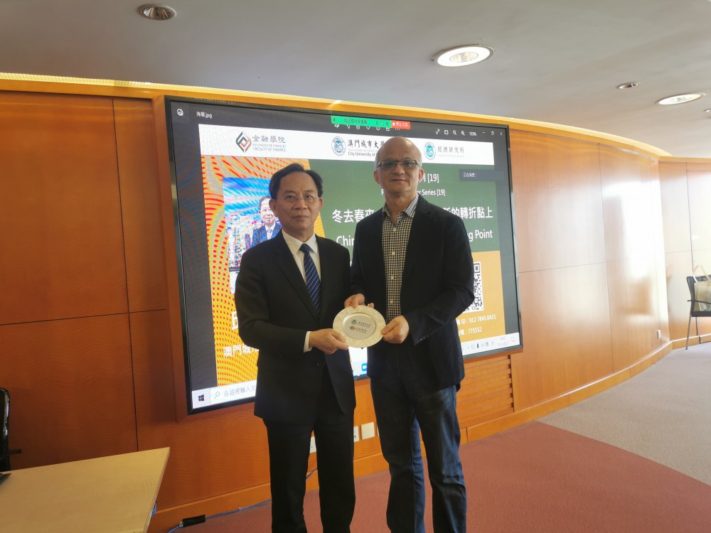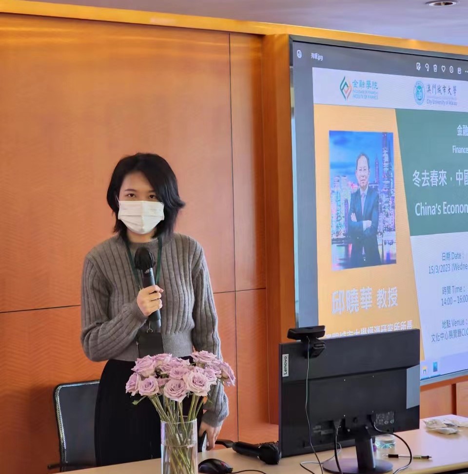 On 15 March 2023, the Faculty of Finance of the City University of Macau held the Finance Seminar Series [19] at the Cultural Centre. Professor Xiaohua Qiu, Director of Institute of Economic Research of City University of Macau, was invited to deliver a speech titled “China’s Economy at a New Turning Point”. Guests attending this seminar include Dean Adrian Cheung, Associate Dean Eva Khong, Associate Professor Yinggui Wang, Assistant Professor Lu Liu, Assistant Professor Lifei Xue and Assistant Professor Di Li of Faculty of Finance, City University of Macau.