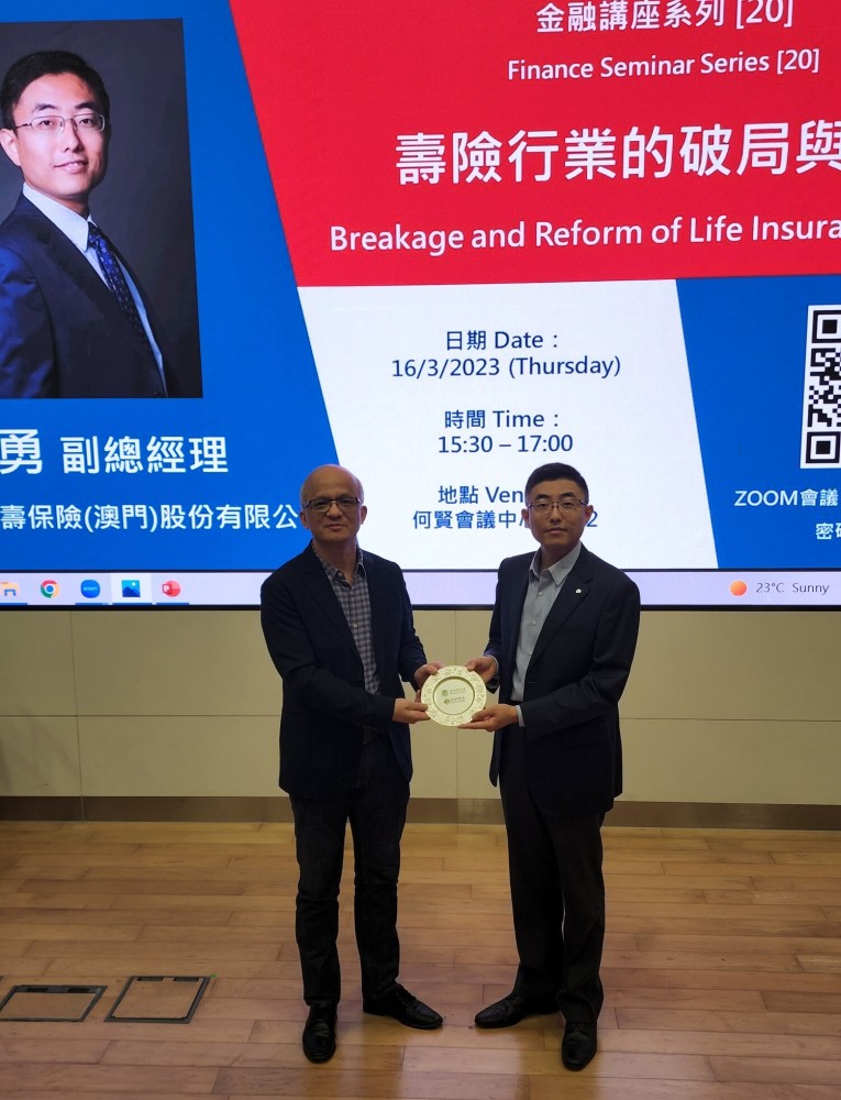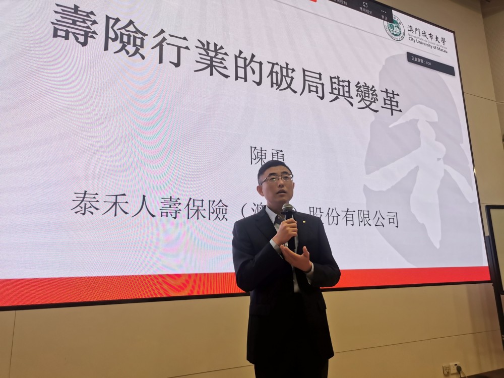 On 16 March 2023, the Faculty of Finance of the City University of Macau held the Finance Seminar Series [20] at the Ho Yin Convention Centre. Mr. Yong Chen, Vice General Manager of Tahoe Life Insurance Company (Macau) Limited, was invited to deliver a speech titled “Breakage and Reform of Life Insurance Industry”. Guests attending this seminar include Dean Adrian Cheung, and Associate Dean Eva Khong of Faculty of Finance, City University of Macau.