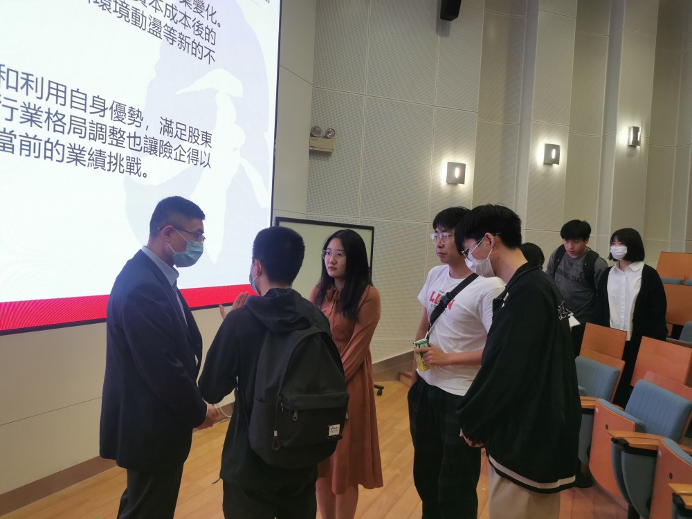 At the end of the sharing session, the students took this valuable opportunity to actively pose questions related to the current situation of the financial market, and enthusiastically communicated with Mr. Yong Chen, expressing their hope to learn more information about the future risk management field. Mr. Chen answered in detail, and suggested that the students seize the time to enhance their knowledge and obtain CFA, FRM and other qualifications. The Seminar helps students to learn more about the opportunities and challenges facing the life insurance market and how to deal with them, which helps them grasp the development prospects of the life insurance industry. The students also expressed their expectations for the finance seminars in the coming semester.
