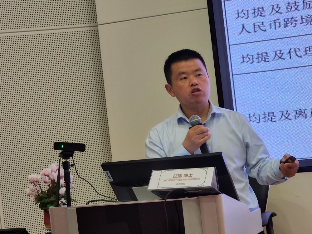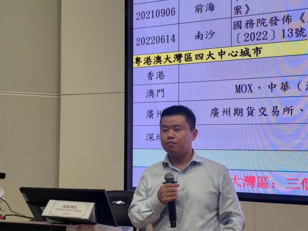 Dr. Ren introduced the development of the financial industry in Hong Kong and Macau. Hong Kong's banking industry is home to 70 of the world's top 100 banks, with total industry assets exceeding US $3 trillion. Its bond market is the third largest in Asia, next to Mainland and South Korea. Hong Kong has the largest international fund management center and international private wealth management center in Asia, the largest offshore RMB capital pool in the world, and about two-thirds of China's inward and outward investments are conducted through Hong Kong. Macau's financial system is a modern and open financial system with regional characteristics. The financial industry is the third largest industry in Macau, after the gambling industry and the real estate industry. The financial industry is dominated by the banking industry, supplemented by the insurance industry, and Chinese-funded banks are the main force in Macau's banking industry. Over the years, it has played an important role in promoting the moderately diversified development of Macau's real sector economy.