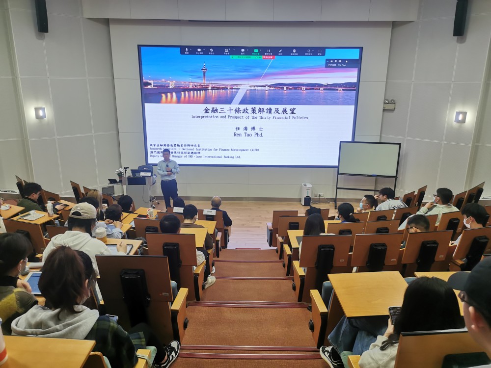 At the end of the sharing session, students took this valuable opportunity to actively pose questions related to the financial industry in Hong Kong, Macau and the Greater Bay Area, and Dr. Tao Ren answered in detail. In the Seminar, the students paid attention to the 30 financial support measures opportunities for Macau, and better understand the advantages of Macau in the Greater Bay Area, which is helpful to grasp the current development trend of finance. The students also expressed their expectations for the sharing of the next finance seminar.