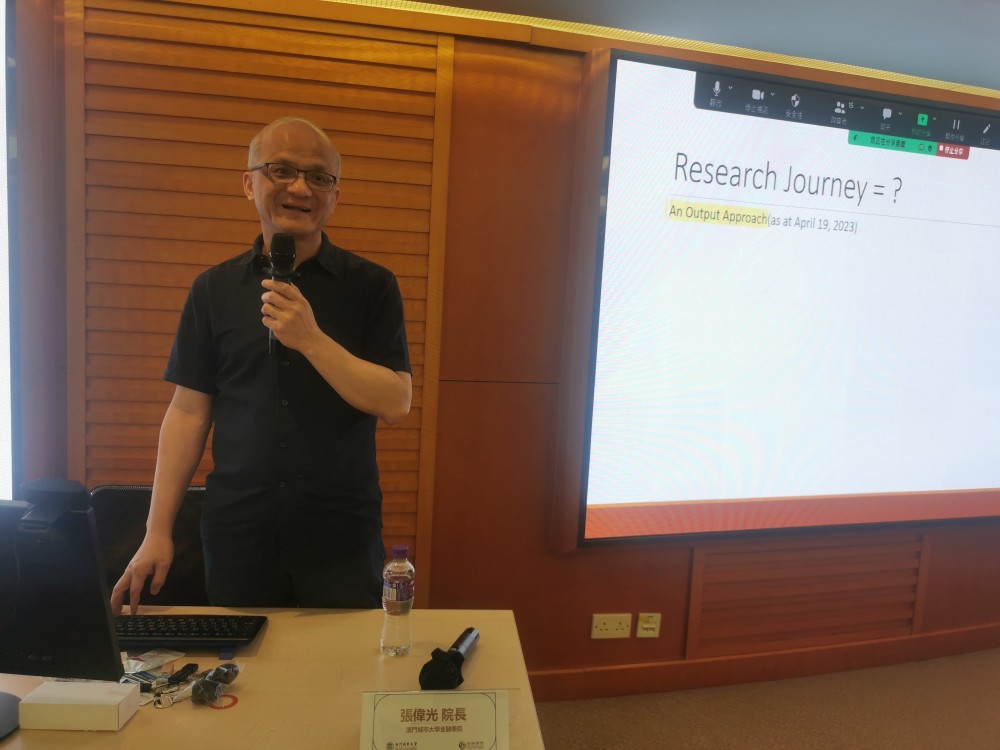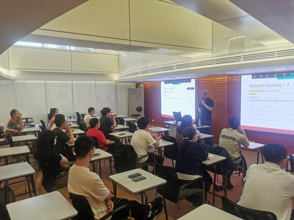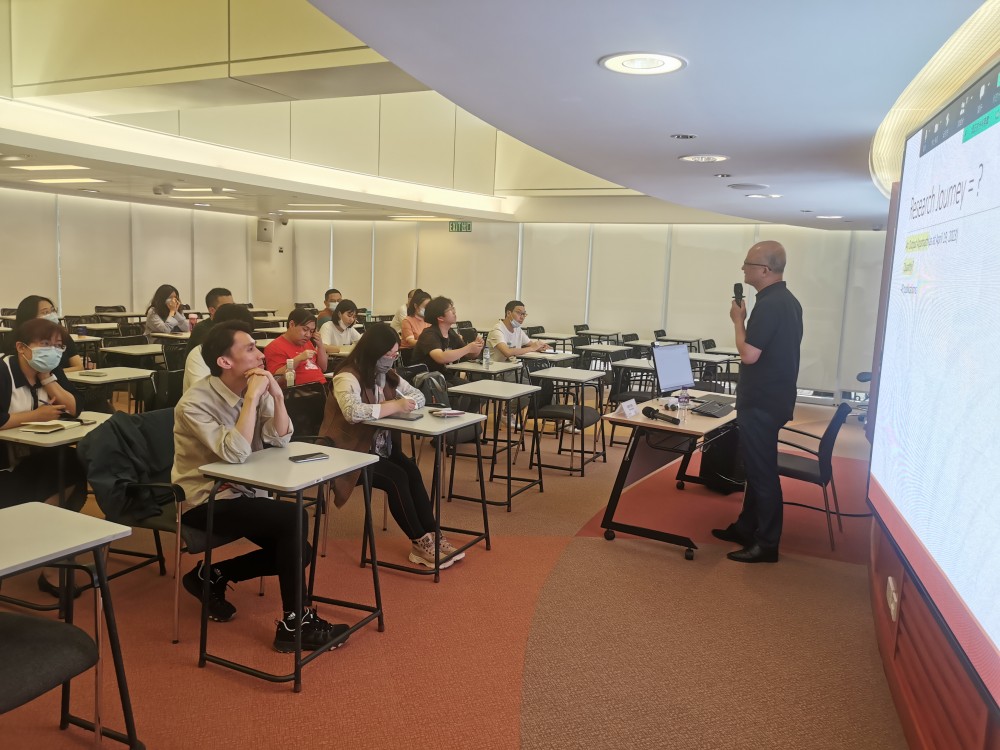 Taking an equation as an example, Professor Cheung explained that doing academic research is a process in which individual factors such as diligence, disciplined, strong research interest and willingness to learn are assumed as parameters and variables, and different factors can have different effects on research results. By sharing his own experience, Professor Cheung stated that for PhD students, there is no right or wrong in choosing a research university or a non-research university, a well-known or young thesis supervisor, and thesis topics, and all decisions can bring different help to their future research. He encouraged students to challenge themselves, always pay attention to the time limit, know and well use their math skills, and look for good research topics.