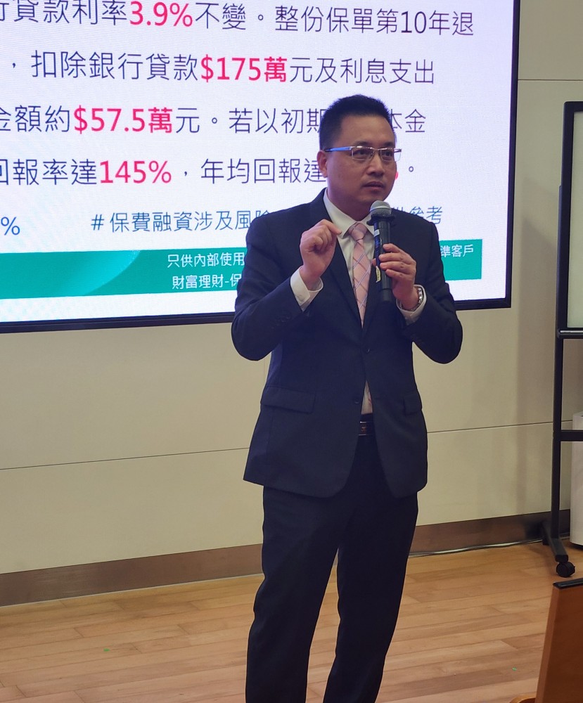 Mr. Lo then introduced the concept of premium financing. Premium financing refers to the policy holder's pledge of an approved insurance contract to a financial institution as collateral. Based on the valuation of the collateral, the financial institution grants part of the loan to the insured for the purchase of the policy. For example, if the required premium is $100, the insured person will pay 20% in advance. The remaining 80% is paid in full by the loan, the policy is approved to generate dividends, the financing also generates interest, from which the policyholder earns a positive interest margin. In short, premium financing refers to borrowing money from the bank to take out insurance. The customer pays the premium of the life insurance policy with the loan, and transfers the policy interest to the bank as collateral for the loan. He also pointed out that the form of premium financing is similar to that of setting up mortgages in that both offer a lower principal in exchange for a higher expected return.