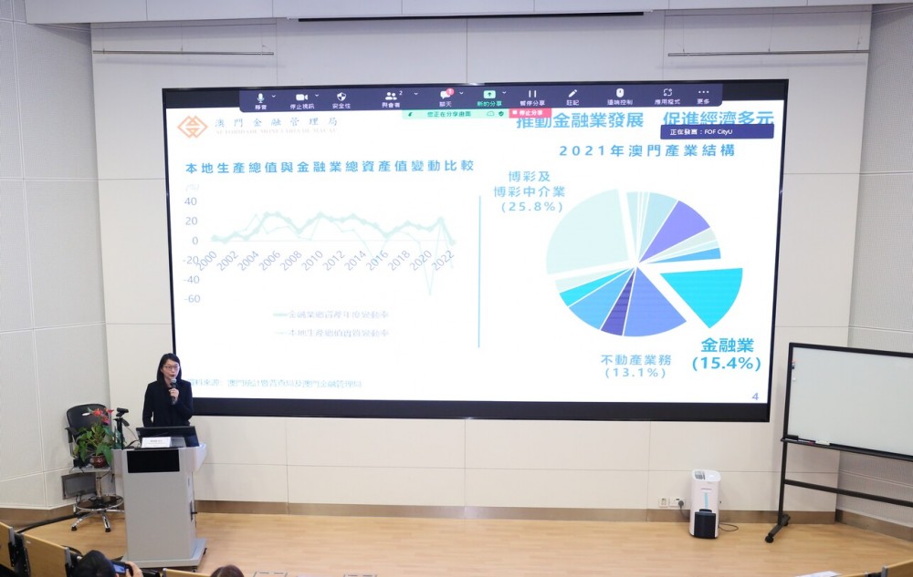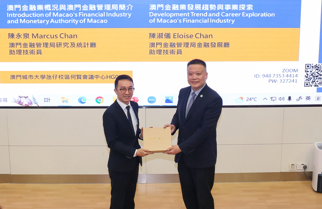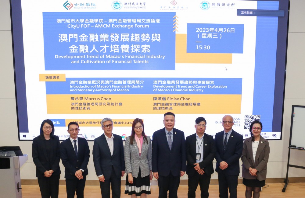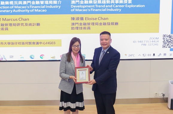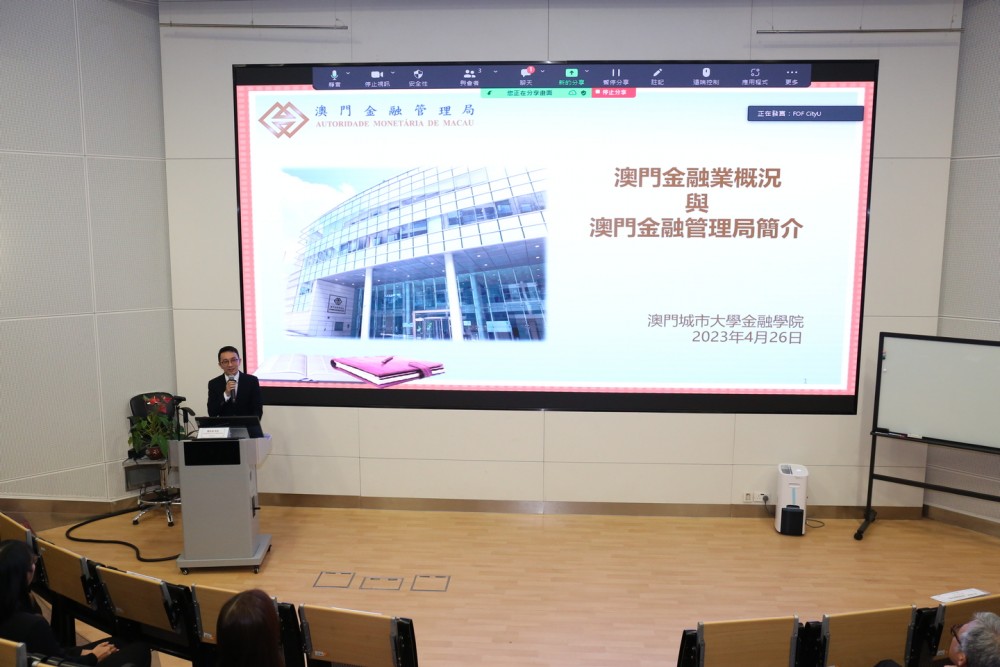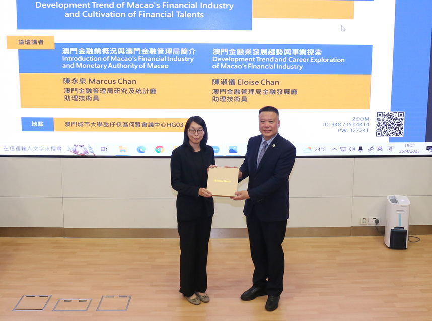 City University of Macau (CityU) and the Monetary Authority of Macao (AMCM) co-organized an exchange forum on the theme of “Development Trend of Macao’s Financial Industry and Cultivation of Financial Taletns” yesterday (April 26th). The event featured two thematic sessions aimed to facilitate discussions and exchanges with industry elites on topics such as modern finance development trends in Macao and measures for cultivating financial talents. The organizers hoped to encourage students to obtain professional qualifications in finance and plan their careers more effectively. The seminar was attended by Leong Man Ngan, Director of the Research and Statistics Department of the AMCM, as well as Vice Rector Ip Kuai Peng, University Consultant Ip Peng Kin, Pro-Rector Chu Te Lin, Dean Adrian Cheung Wai Kong of the Faculty of Finance, Associate Dean Eva Khong Yueng Wah, faculty, and students.
