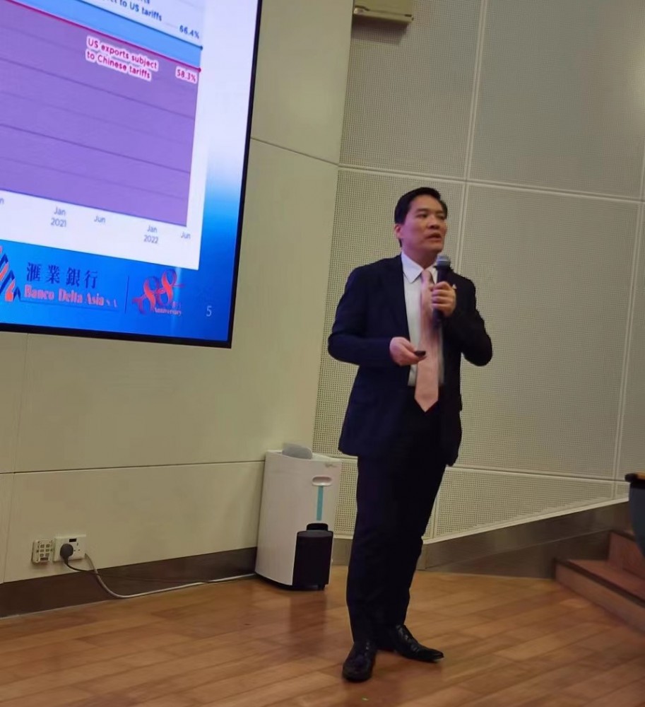 Lastly, Dr Yeung delivered a speech on " Opportunities and Challenges for Global, Hong Kong and Macau in 2023". He pointed out that the geopolitical situation in 2023 will be dominated by the increasing tensions between China and the United States; the impact of the Russia-Ukraine war, trade, technology, finance and bilateral cooperation highlights the different interface of the Sino-US conflict, and geopolitical risks have an impact on the stock market and the global economic outlook. He also touched on investment choices in volatile markets and the Hong Kong economy after the pandemic. Dr. Yeung predicted that the future of globalization will have four different scenarios: reconnection, virtual integration, digital fragmentation, and disintegration of the world. Reconnection means that the world will see more free trade and international connectivity; virtual integration means that people can be more closely connected through the Internet and virtual platforms; digital fragmentation refers to the potential fragmentation of global information, which may also lead to the widening of the digital wealth gap; and the disintegration of the world may lead to the widening of political, economic and cultural differences between countries. Responses to these possibilities include diversification, mutual support and divestment. Dr. Yeung then used the example of Silicon Valley Bank to explain the unexpected impact of high-interest rates to curb inflation. He also shared the development opportunities of Macau's financial and economic sectors, including fintech, green finance and the development of the Guangdong-Hong Kong-Macau Greater Bay Area. He also explained the risks and challenges in the future situation and provided advice and guidance for the development of Hong Kong and Macau.
