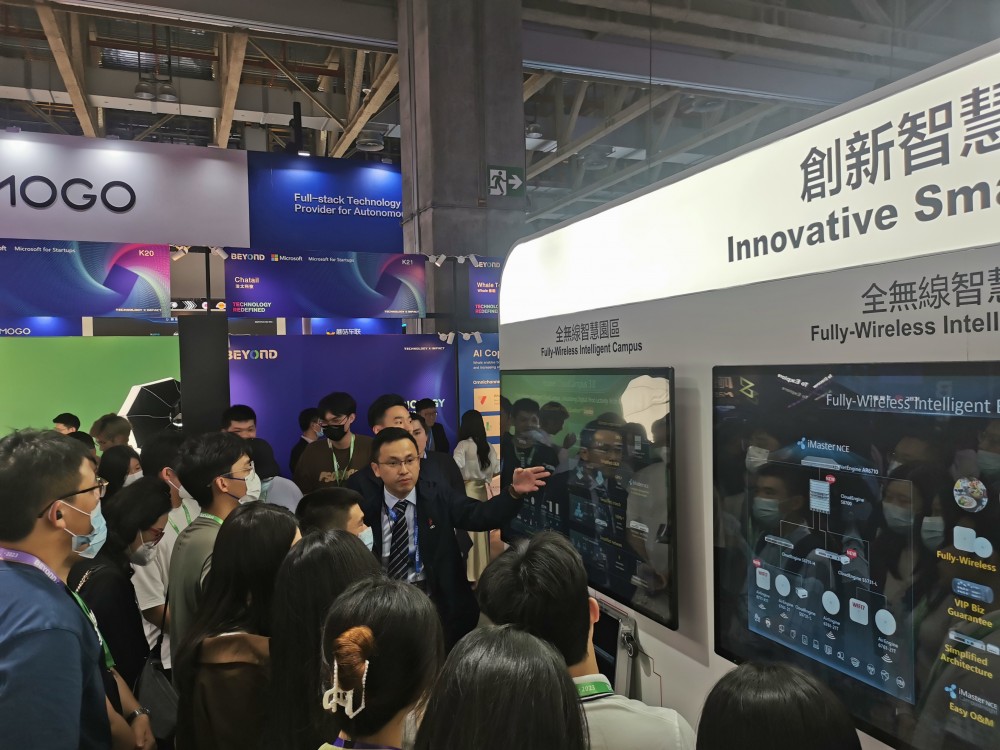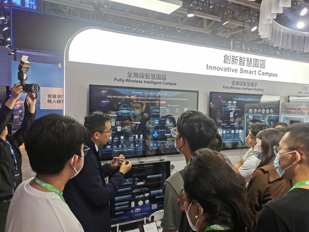 With the theme of "For a DigitALL Intelligence Macau", Huawei's exhibition area presents the vision of "Building a smart world where everything is connected" from five areas: Huawei Cloud, operator business, enterprise business, digital energy and terminals. Huawei Cloud focuses on six products such as KooVerse, Huawei Cloud Stack, Huawei River Map, KooMessage, wave model and digital business cards. Under the professional introduction of Huawei personnel, the students visited the exhibition area and deeply understood the diversified solutions such as 5G indoor digitization, FTTR all-optical gigabit experience and cloud network express line for different scenes such as office buildings and private residences. Huawei's exhibition area also presented a number of digital transformation cases such as smart medical care, smart education, smart finance, and smart parks, which triggered students' thinking and exploration of digital transformation.