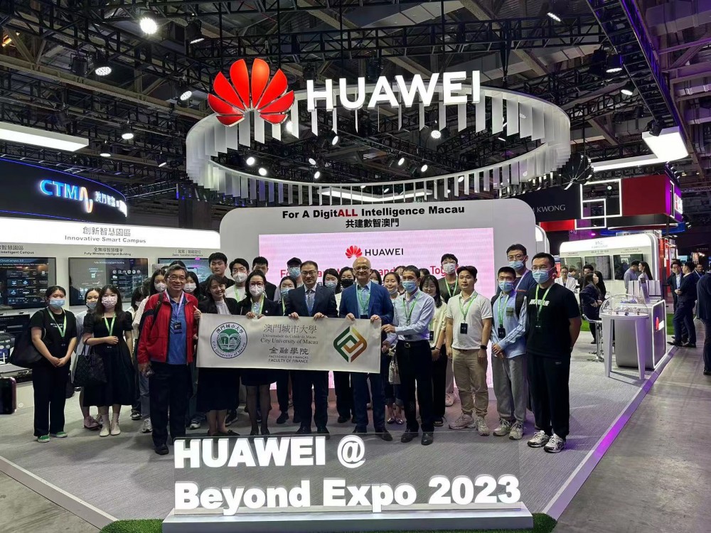 On May 10, 2023, teachers and students of the Faculty of Finance, City University of Macau, were invited to visit the Huawei exhibition area of the third BEYOND Expo 2023 held at the Venetian Cotai Convention and Exhibition Center of Macau. Dean Adrian Cheung, Associate Dean Eva Khong and Assistant Professor Derick Lin of the School of Finance of City University of Macau, Associate Director Che of the Macao Green & Low Carbon Industry Association, and a group of 30 finance undergraduates and master's students of the Faculty of Finance actively participated in the exchange visit. The Faculty of Finance has initiated preliminary cooperation with Huawei leaders and executives, and plans to build an exchange platform for financial technology enterprises, universities and research, hold special lectures, joint research, and students' study and training of financial technology talents.