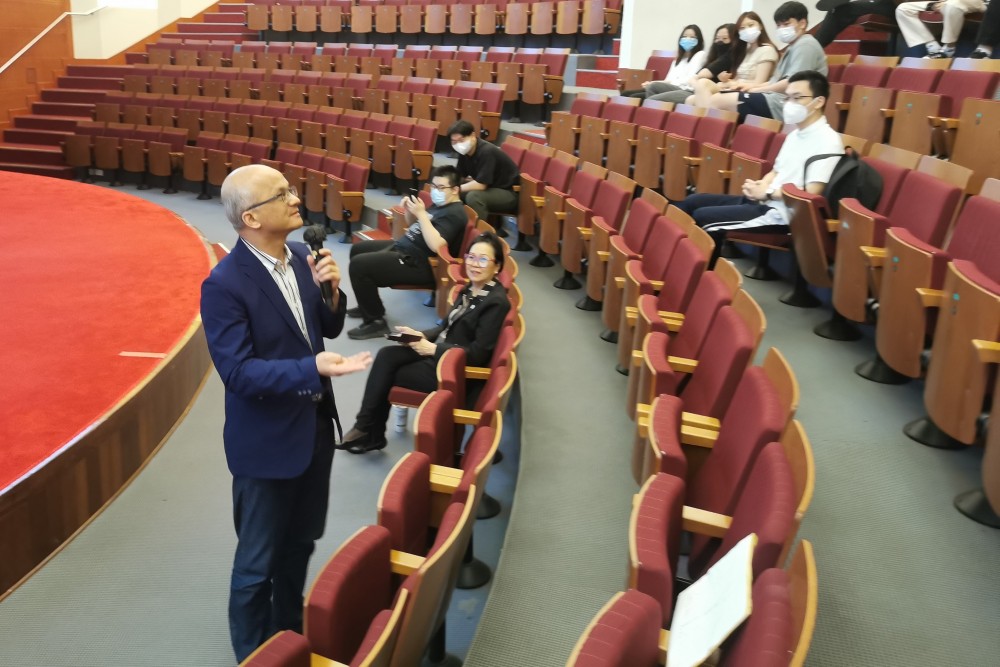 Dr. Derick Lin, Course Coordinator of BAE Program, introduced the characteristics of the two concentrations (i.e. Finance and Economics), respectively, and detailed the setting and learning content in the third and fourth academic years. He also gave suggestions on the future employment and further study direction for the students after graduation, and explained the details and key points of the procedures for selecting a concentration. According to Dr. Lin, both finance and economics majors can help students advance to broad career prospects. Although the two concentrations are closely related disciplines, their research focuses are different. He urged the students to choose a concentration suitable for themselves, and emphasized that the requirements of the two professional fields are of the same academic rigor.