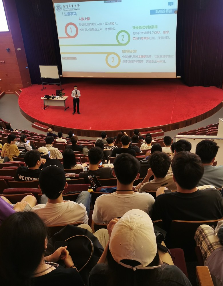 To help students of the 2020 Bachelor of Applied Economics (BAE) program make better and informed decisions on their concentration, the Faculty of Finance conducted a Concentration Selection Information Section on 17th May. This information session provided detailed information on each concentration field, which helped students better plan their future development and encouraged them to explore a concentration that will be more suitable for them. Guests attending this section include Dean Adrian Cheung and Associate Dean Eva Khong, City University of Macau.