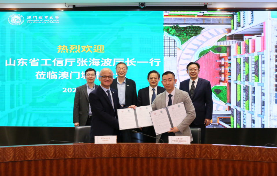Director Haibo Zhang, Secretary of Party Committee of the Shandong Provincial Department of Industry and Information Technology, and his delegation visited City University of Macau today and was warmly received by Vice-Rector Wanlei Zhou. The guests visited the campus environment and teaching facilities, and the two sides held discussions on topics such as teacher and student exchanges, discipline construction, and personnel training. Deputy General Manager Wei He, member of the Party Committee of Shandong Talent Group Co., LTD., and Dean Adrian Cheung CityU Faculty of Finance attended the discussion. The Faculty of Finance of CityU signed a cooperation agreement with Zhangtai Securities Institute for Financial Studies of Shandong University to promote the training of financial professionals and the exchange of higher education between Shandong and Macau.