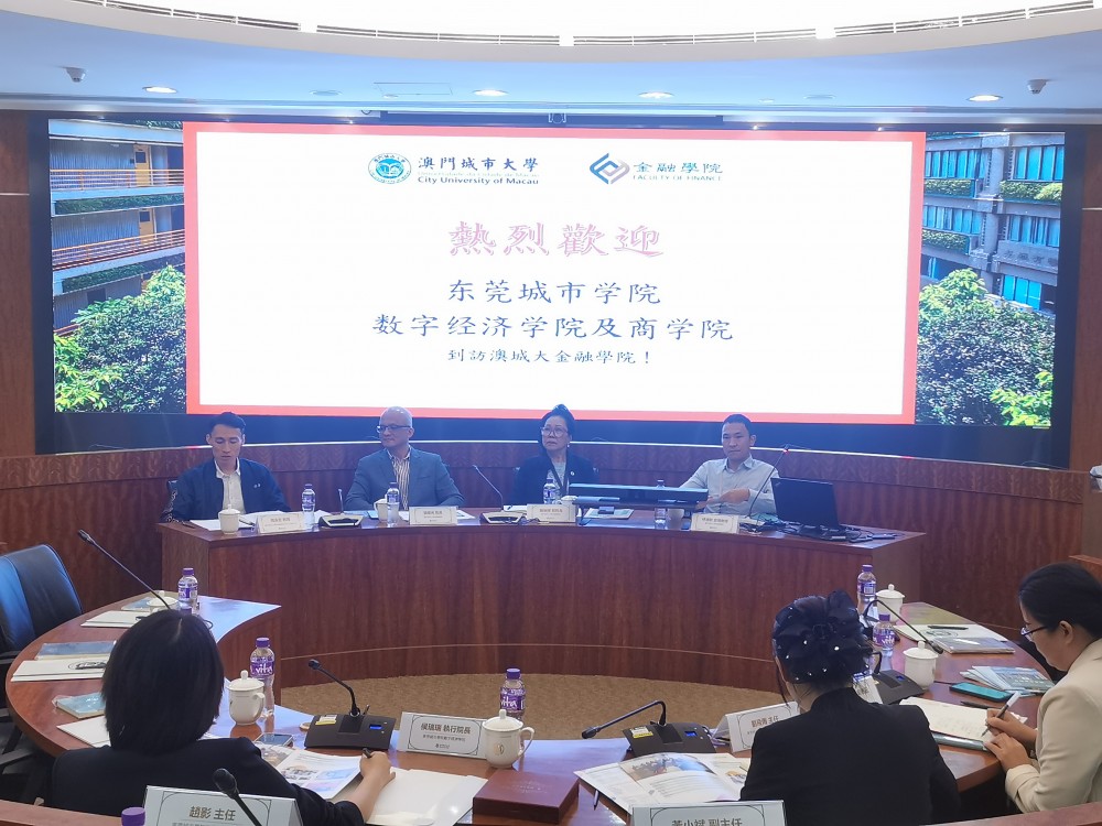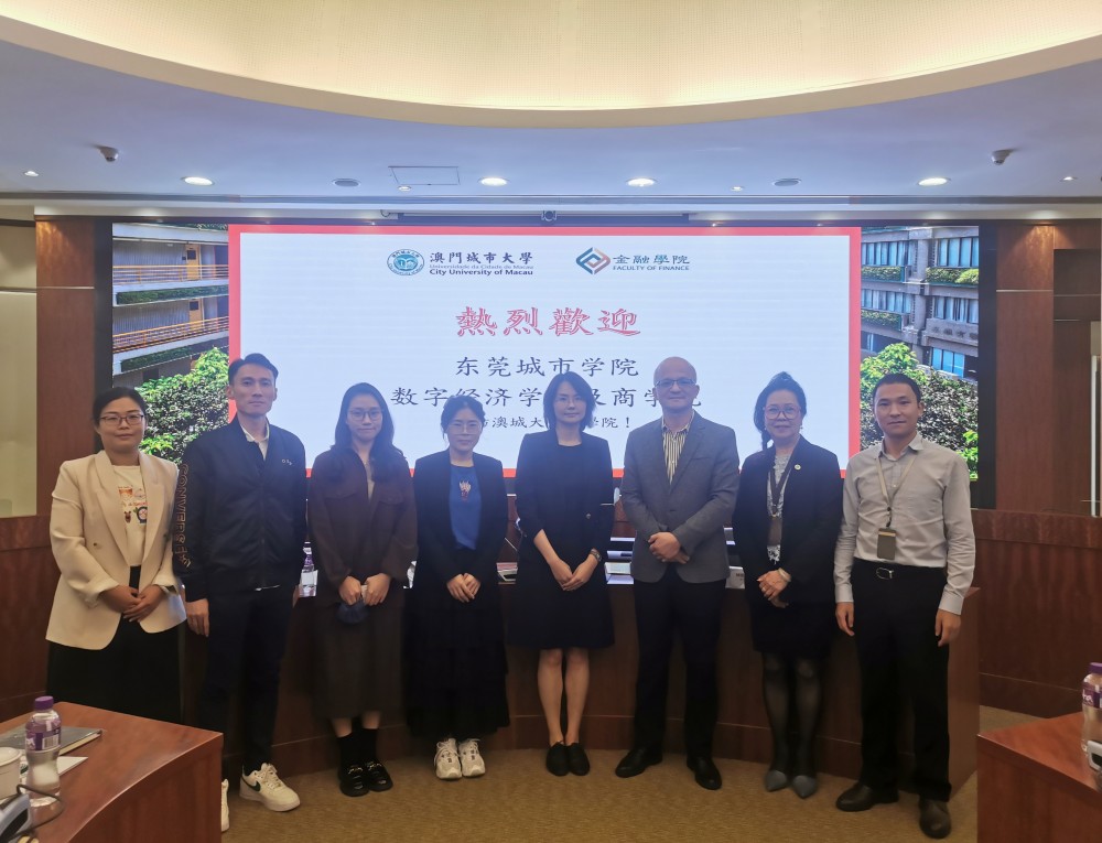 A delegation from School of Digital Economy, Dongguan City University, led by their Executive Dean, Ruirui Hou, visited the City University of Macau (CityU) on June 15 and was warmly welcomed by Dean Adrian Cheung of Faculty of Finance. Both sides expressed their interest in personnel training, future cooperation and coordinated development.