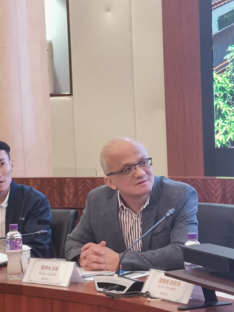 Dean Adrian Cheung warmly welcomed the visit of Executive Dean Ruirui Hou and her delegation, and introduced the development process and achievements of CityU and Faculty of Finance from the aspects of the Faculty's scientific research achievements, laboratory construction, historical background and external cooperation. Executive Dean Hou then introduced the School of Digital Economy of Dongguan City University, and pointed out that its undergraduate graduates are eager to apply for master's programmes in Macau, and look forward to promoting exchanges and cooperation with CityU. The two sides look forward to further discussions and cooperation on mutual visits between teachers and students, talent cultivation and other aspects in the future, so as to jointly promote the development of financial talents.