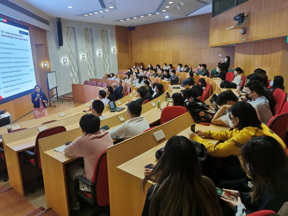 Associate Dean Eva Khong expressed her gratitude to the guests for their support and introduced Ms. Celia Lao to the teachers and students. Ms. Lao has over 15 year experience in aviation management. She is currently responsible for driving AirAsia digital & cargo business in China, Hong Kong & Macau. She has made great contributions to further AirAsia’s presence in Greater China by taking different management positions in areas of commercial strategy, government & airport affairs, regulatory compliance, and operations management. She has been awarded the Nobel Laureates Honorary Award “2019 Asian Outstanding Leadership for Women” and Guangdong-HK-Macau Greater Bay Area Outstanding Entrepreneur “Best CSR Award”.
