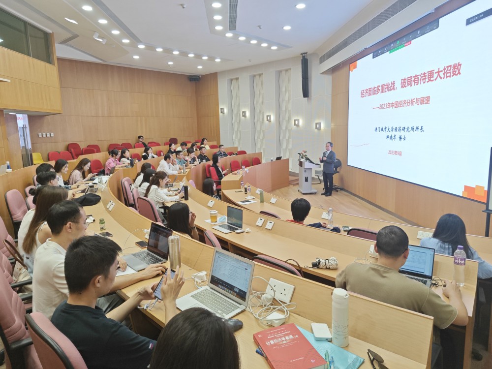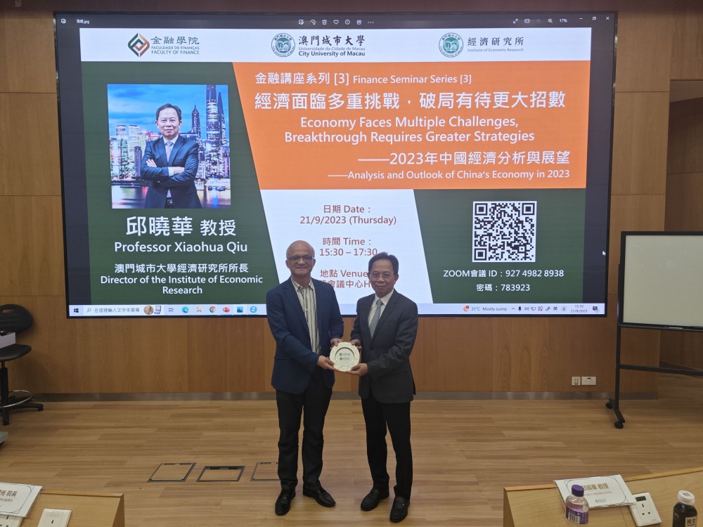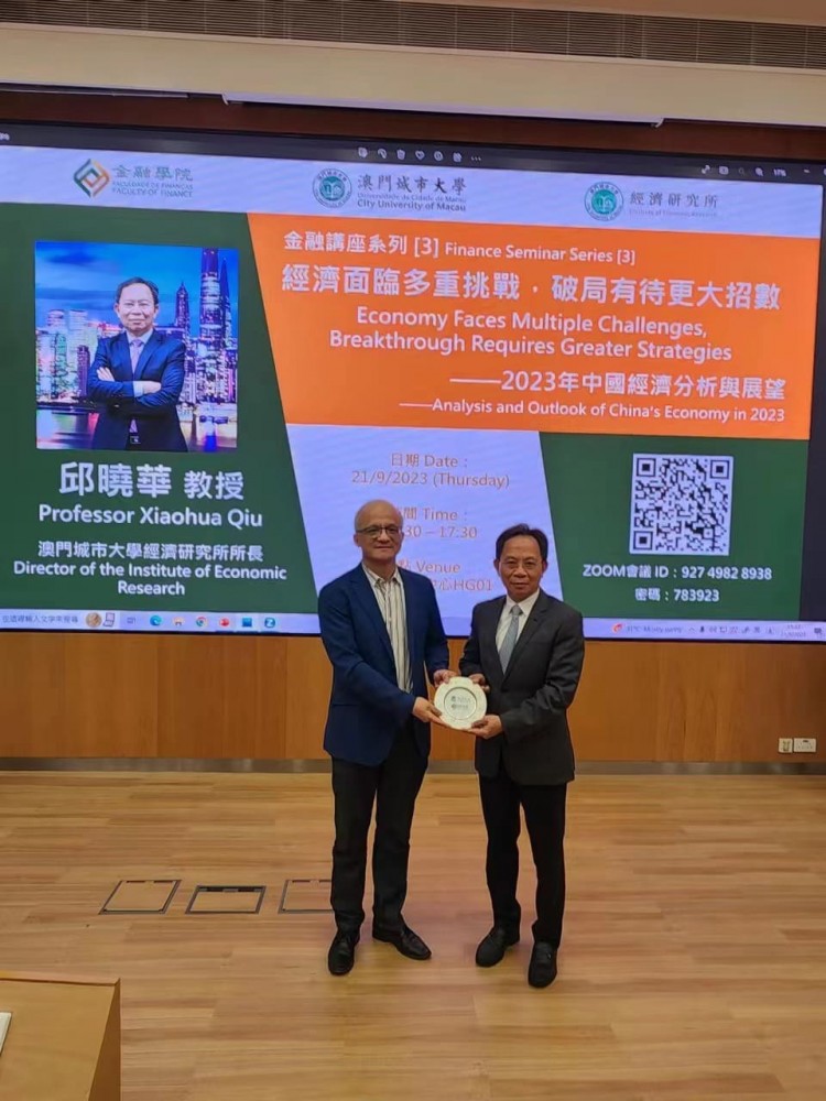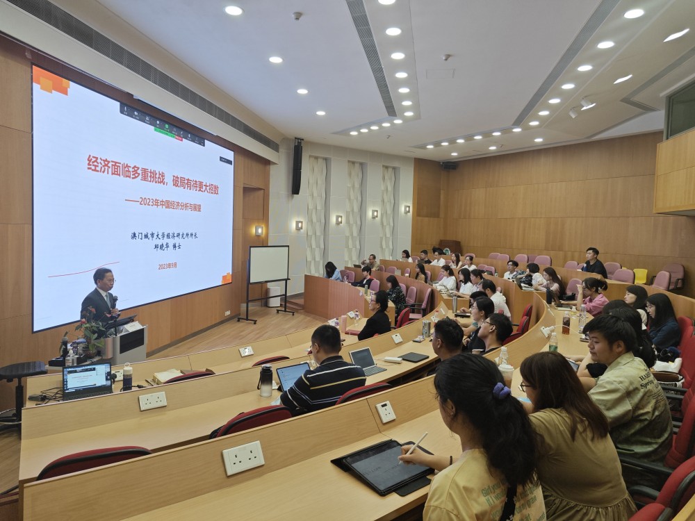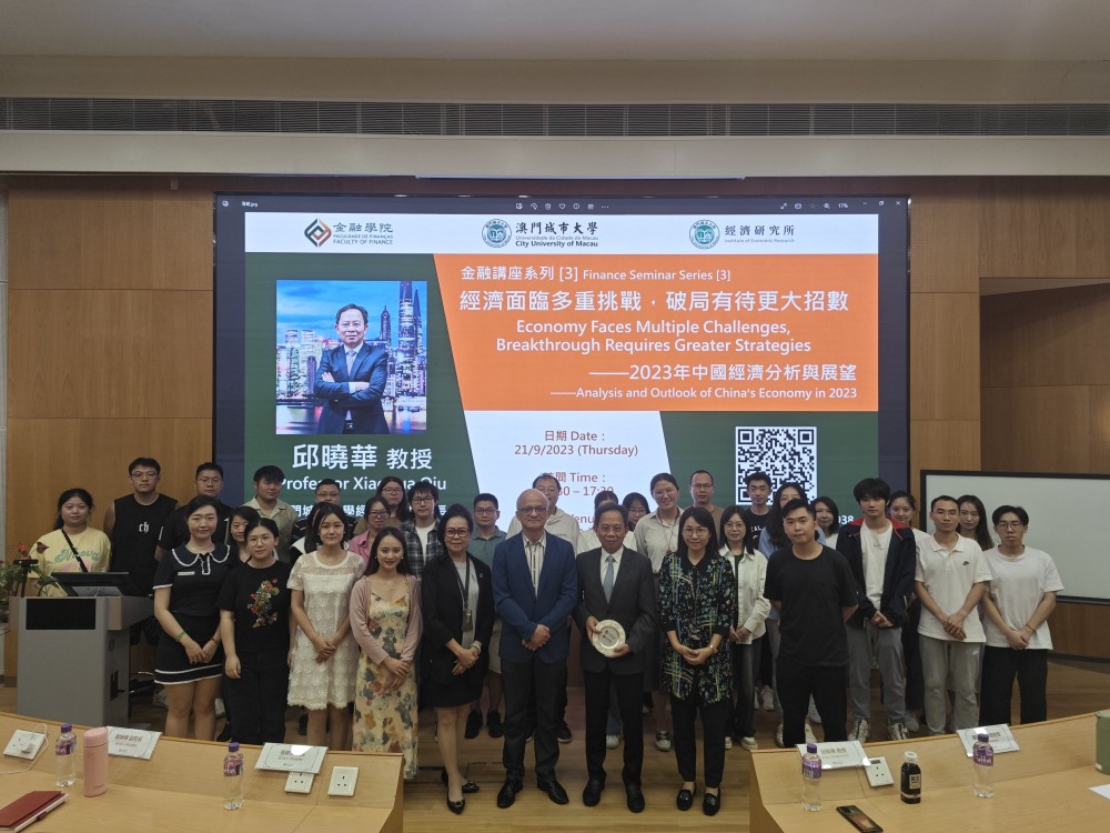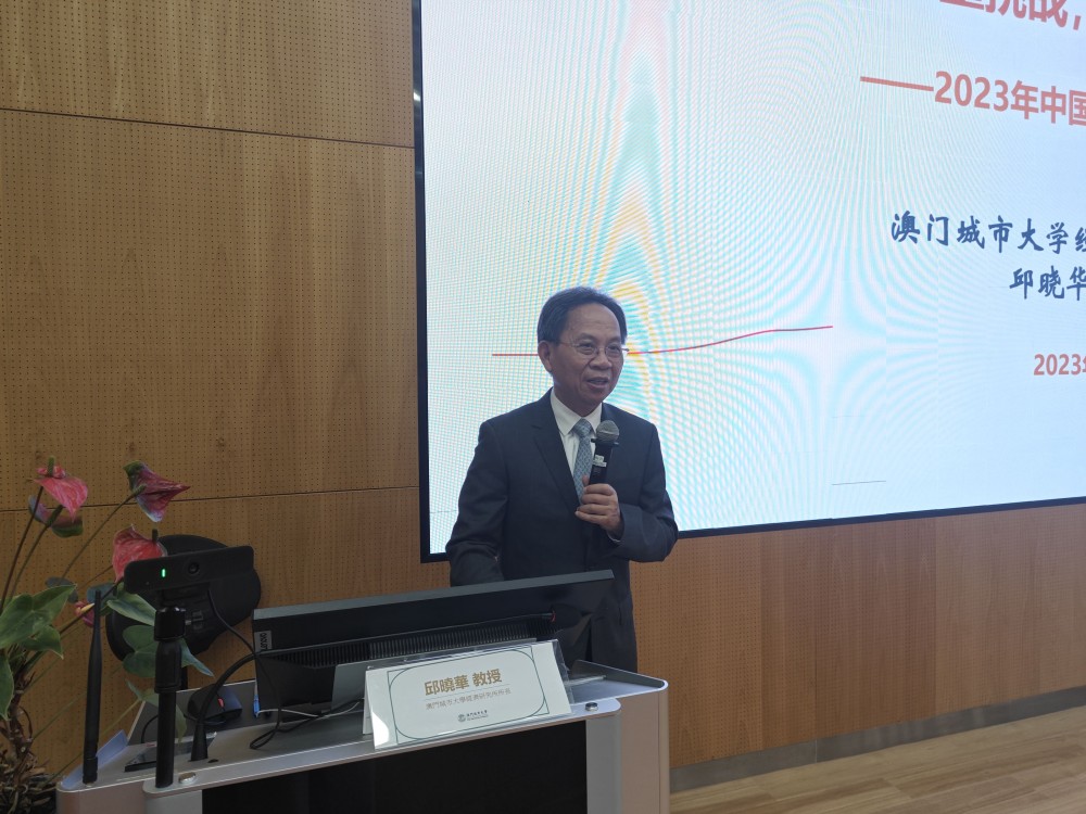 On September 21, 2023, the Faculty of Finance at City University of Macau held a series of finance seminars at the Ho Yin Convention Center [3]. The seminar invited Professor Qiu Xiaohua, the Director of the Institute of Economics Research at City University of Macau, as the keynote speaker. The topic of the seminar was "Economy Facing Multiple Challenges: Breakthrough Requires Greater Strategies - China Economic Analysis and Outlook for 2023." The guests in attendance included Dean Adrian Cheung and Associate Dean Eva Khong of Faculty of Finance, City University of Macau, as well as Assistant Professor Kuang Tingyue from the Faculty of Business.