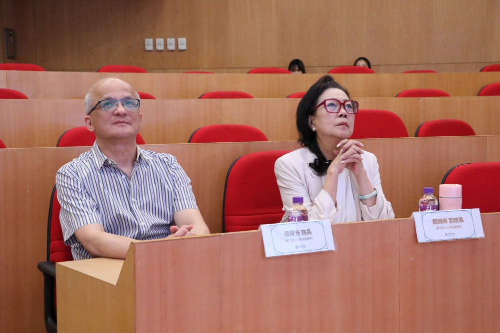 On October 26, 2023, the School of Finance at City University of Macau organized a series of financial lectures at the Ho Yin Convention Center. The lecture invited Professor Wu Yunqiao from Shanghai Lixin University of Accounting and Finance as the guest speaker to share the topic "Effective Leadership Construction in Investment Banking Team Management" through online participation. Guests in attendance at the lecture included Dean Adrian Cheung and Associate Dean Eva Khong of Faculty of Finance, City University of Macau.