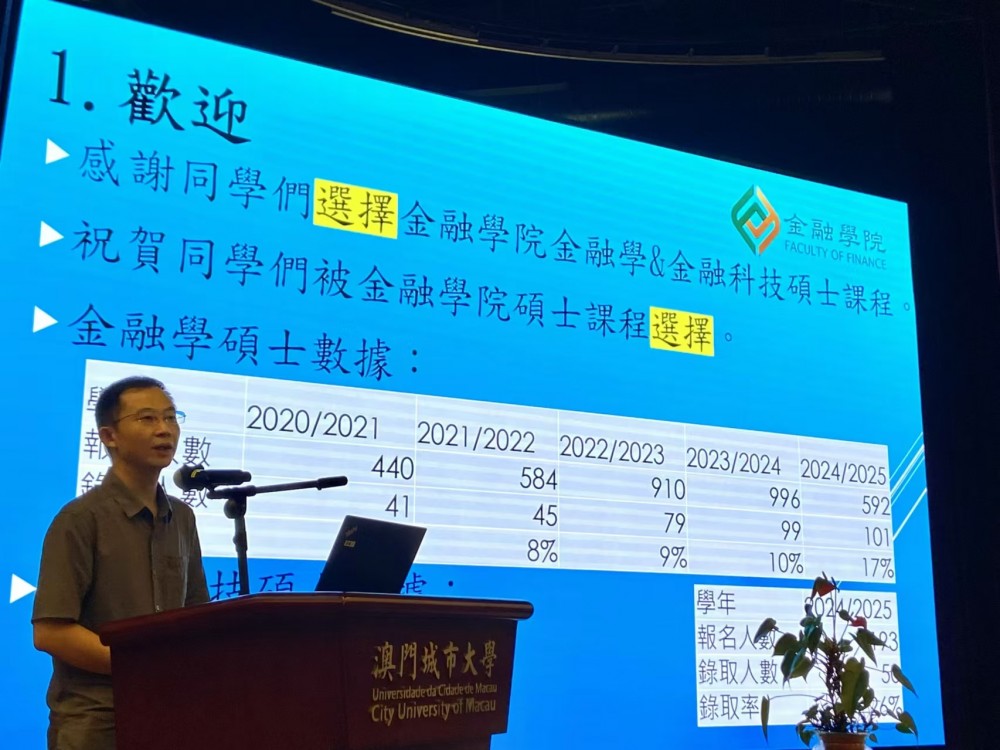 First of all, Dean Cheung delivered a welcome speech to the new students, briefly introducing the development history of the Faculty of Finance, the teaching evaluations, and the distinctive features of its programs. He also outlined the future development plans of the faculty. In recent years, the academic standards and teaching quality of the faculty have been continuously improving, gaining international recognition. He specifically mentioned the faculty's active development of new programs, including the newly introduced master’s program in FinTech this academic year, and the upcoming PhD program in Economics currently under preparation. Dean Cheung emphasized the faculty's commitment to further enhancing academic standards and teaching quality, aiming to provide students with the best possible learning environment and resources. He encouraged students to integrate into and actively participate in the faculty’s ongoing development.