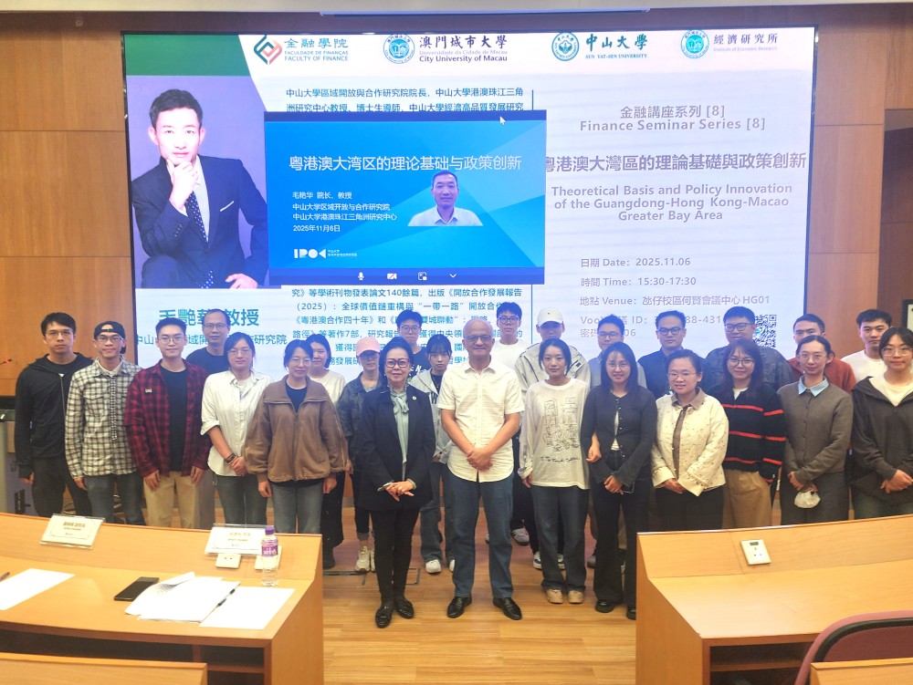 On November 6, 2025, the Faculty of Finance of City University of Macau held a finance seminar at Ho Yin Conference Center on Taipa Campus. The seminar featured Professor Mao Yanhua, Dean of the Institute of Regional Opening and Cooperation at Sun Yat-sen University, was invited as the keynote speaker. The seminar focused on the theme "Theoretical Basis and Policy Innovation of the Guangdong-Hong Kong-Macao Greater Bay Area.” Distinguished guests included Dean Adrian Cheung and Associate Dean Eva Khong of the Faculty of Finance.