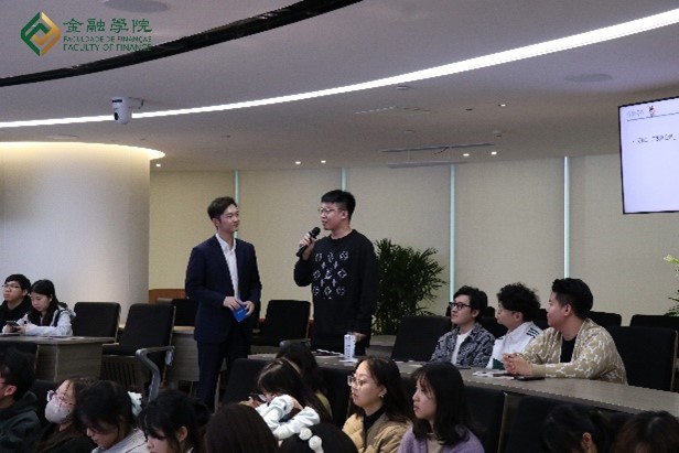 Mr. Wang Zhichen, another lecturer from the GF Fund Investor Education Base, delivered a themed lecture titled "Financial Career Launch Guide - The Advancement Path from Campus to Workplace." He outlined career directions in the securities industry for the students, including buy-side institutions, sell-side institutions, and other financial sectors. He then introduced various functional positions within fund companies, guiding students to identify suitable career paths and target positions based on their personalities and professional skills. Lastly, he shared practical job-seeking skills focusing on resumes, interviews, and other key stages.