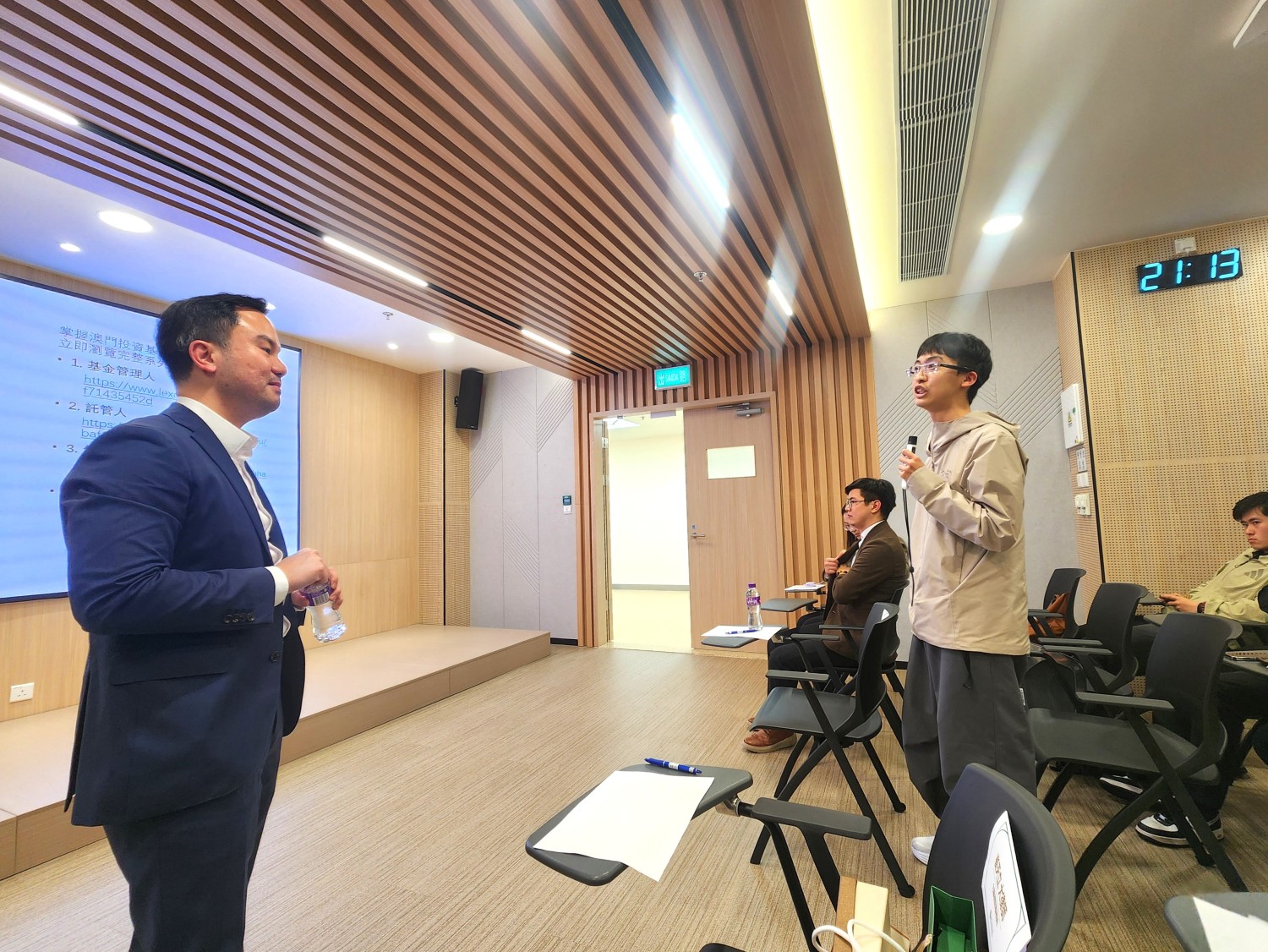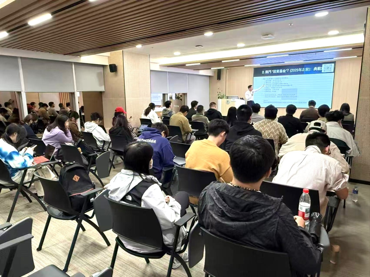 During the Q&A session, Mr. Chui engaged actively with the students, who eagerly asked legal questions related to the Investment Fund Act. Mr. Chui patiently answered their questions. This seminar provided students with a deeper understanding of Macau's Investment Fund Act, helping them grasp the current advantages of Macau's financial and fund market. The faculty and students of the Faculty of Finance once again thanked Mr. Chui for his insightful sharing, which enhanced students' knowledge of Macau's Investment Fund Act and provided a valuable learning experience.